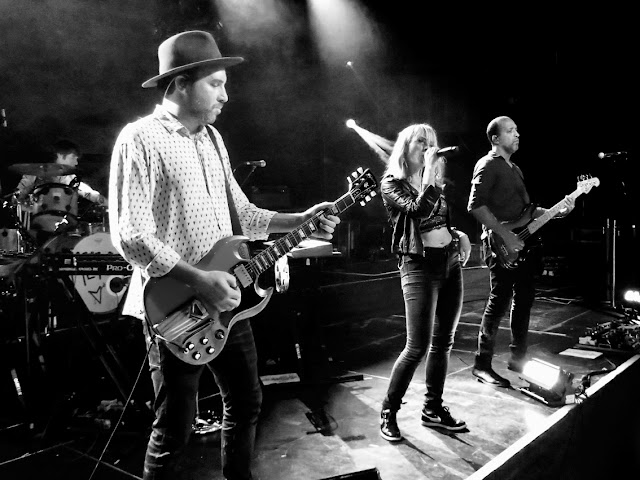 Musikalisch erwies sich der Abend als eher rockig. Zwar waren vor dem Schlagzeug ganze vier Keyboards aufgebaut, die auch immer mal wieder von allen Bandmitgliedern (außer dem Schlagzeuger) benutzt wurden, so richtig zum Einsatz kamen sie aber nur bei "Now Or Never Now", als Emily, James und auch Joshua Winstead gleichzeitig spielten. Ansonsten dominierten Gitarre, Bass und Schlagzeug.