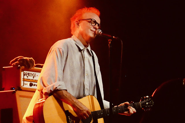 Uns blieb kaum Zeit, darüber nachzudenken, ob Hawk wieder allein auftreten würde - wovon ich eigentlich ausgegangen war - da stand er auch schon auf der Bühne, mit vierköpfiger Band! In diesem Setup musste der Musiker nicht einmal selbst Gitarre spielen und nutzte die Bewegungsfreiheit ausgiebig - er wandelte sich vom vorher gesehenen, unterhaltsamen Singer-Songwriter zu einer Rampensau im Stil von Jarvis Cocker und entwickelte einen gewaltigen Bewegungsdrang.